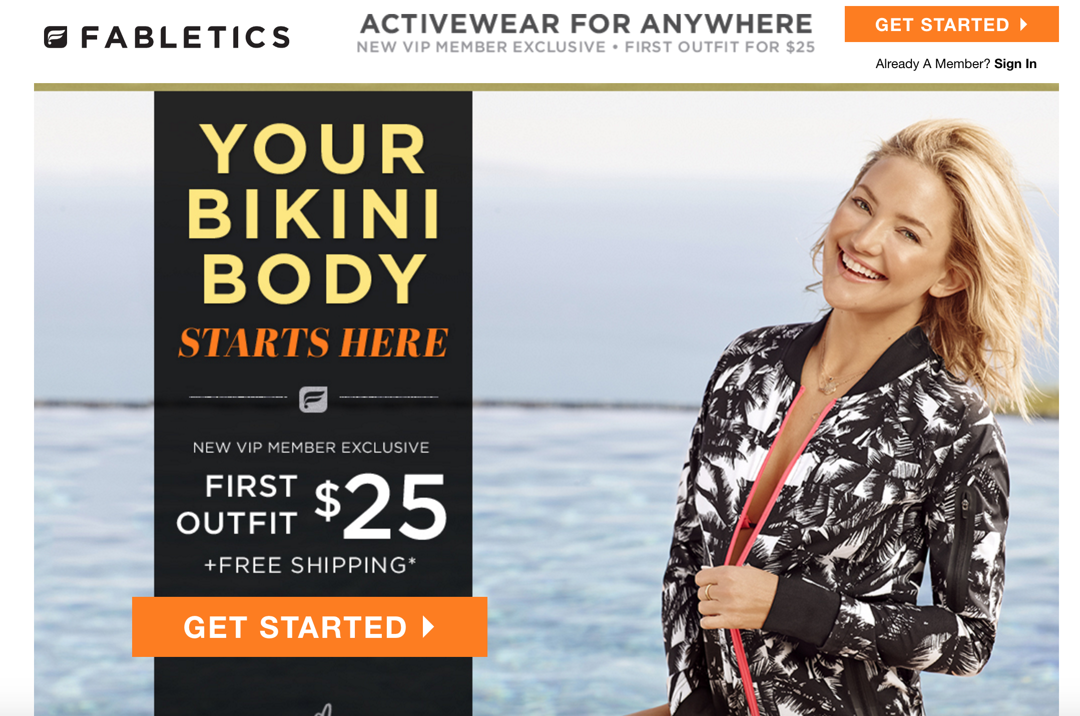 Fabletics was created by Kate Hudson in hopes of creating an activewear that was both comfortable and high quality. You can become a member of this monthly box or feel free to skip whenever you choose. The first outfit is for $25 and free shipping. There are so many cute and comfortable outfits to choose from, it's no wonder why it's been a huge success.