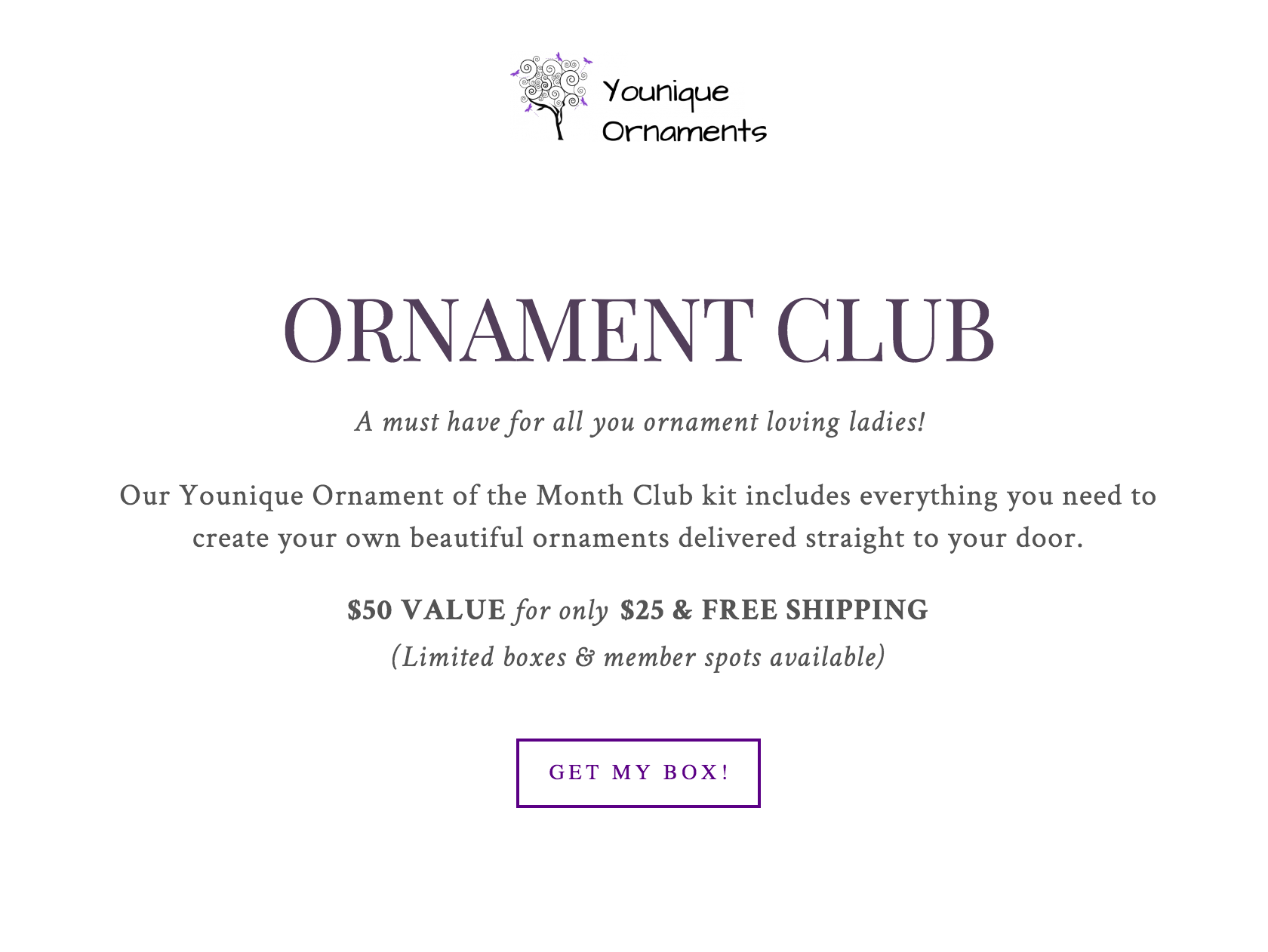 And last but not least, this monthly subscription service post would not be complete without our very own box! We love monthly boxes, which is why we created our own after so many customers and clients asked how we created our quilted ornaments. Now you can be part of our Younique Ornament of the Month Club with a kit that includes everything you need to create your own beautiful ornament, delivered straight to your door. You also become part of our VIP private community, receive a monthly e-book with instructions and even a music playlist with tunes to enjoy while creating.